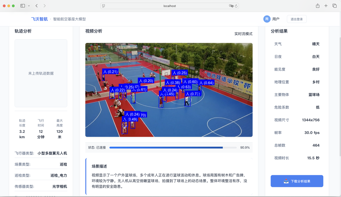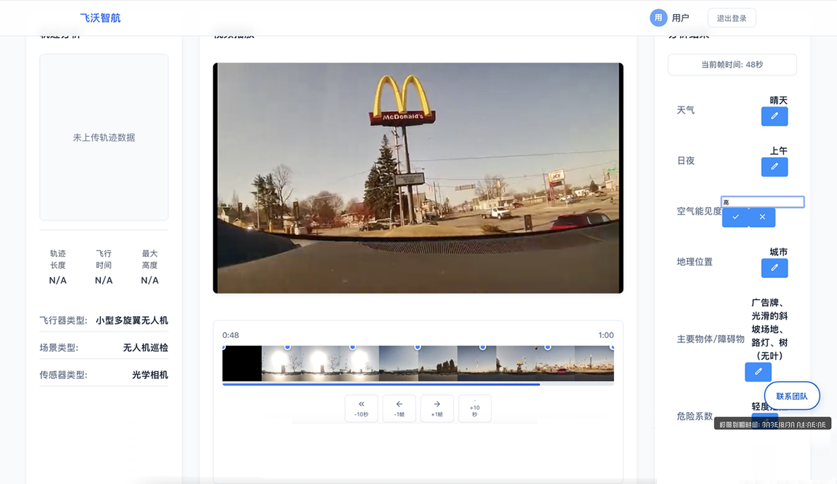 依托自研的多模态大模型能力,系统可对录制的视频流进行智能预标注: 自动识别视频中的各类飞行器、人形目标、设施状态等对象。